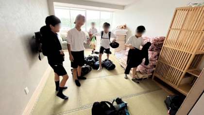 部屋に戻って荷物整理です。みんなで協力して来た時よりも美しく片付けます。