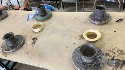 ?作品が完成したら、名札に記入して、ろくろの下に置いておきます。この後、窯で焼き上げてもらい、子どもたちの手元に届くのは2月ごろになるそうです。