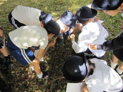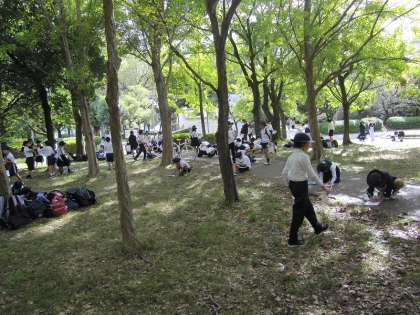 オリエンテーリングのあと、大阪城公園で「しぜんはっけんビンゴゲーム」をしました。