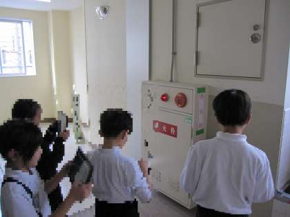 社会科の安全についての学習で、学校にある消防設備を探しました。