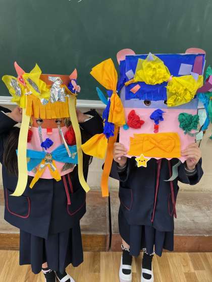 図画工作の学習でおめんを作りました。