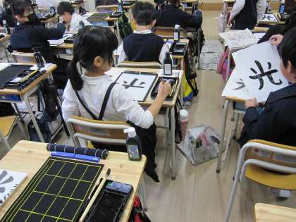毛筆の学習で「光」という字を書きました。