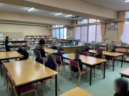 1年生は図書の時間です。図書館司書の先生から図書室の利用の仕方を教えてもらいました。図書室にはたくさんの本があるので、読書を通してどんどん興味を広げてくださいね。