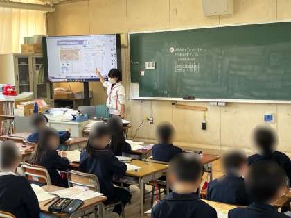 2年生は算数で「ひょうとグラフ」の学習をしています。いろいろな形のメダルを整理するとき、どのような方法があるか学級で交流しました。