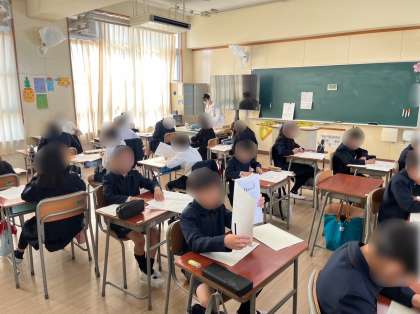 5年生は「すくすくウォッチ」を実施しました。すくすくウォッチとは、大阪府が「子どもたち一人ひとりが学びの基盤となる言語能力や読解力、情報活用能力等を向上させ、これからの予測困難な社会を生き抜く力を着実につけること」を目的として実施している調査です。5年生は教科(国語・算数・理科)とわくわく問題(教科横断型問題)に取り組みました。