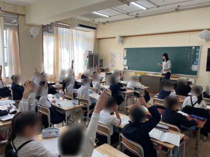 5年生は国語で「知りたいことを聞き出そう」の学習しています。知りたいことを聞き出すため、インタビューの仕方について確かめていきました。