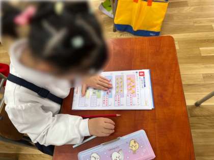 1年生は算数で「10までのかず」を学習しています。計算ドリルを使って、数だけ色をぬっていく練習をしました。子ども達は、間違えないようにチェックをつけながら数えていきました。