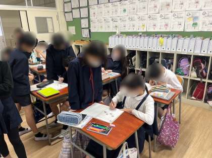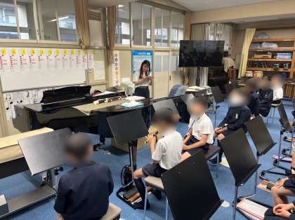 4年生は音楽の学習です。「茶色の小びん」のリコーダー演奏を個々で行いました。一人ひとり伴奏に合わせて、リズムをとりながら丁寧に演奏しました。また、友だちの演奏を聴いている態度も素晴らしかったです。