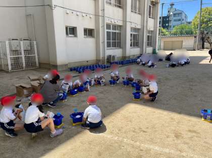 1年生は生活科の学習でアサガオの種を植えしました。新しい鉢に土を入れて、アサガオの種をまき、上に少し土をかぶせました。最後に水やりをしました。どんな花が咲くのか楽しみですね。