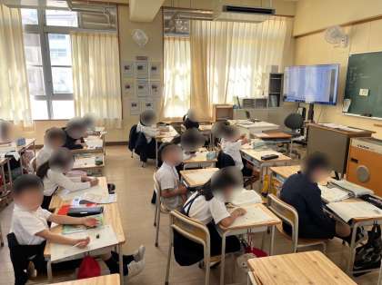 3年生は国語で「メモをとりながら話を聞こう」の学習です。子ども達はインタビューの音声を聞きながら、大事なことを聞き漏らさないようにメモをとっていました。何が大事か考えながら聞くことはとっても大切ですね。