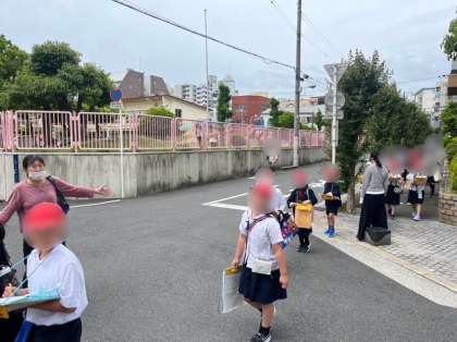 3年生は社会科の学習で校区探検に出かけました。校区の北側エリアと南側エリアの2グループに分かれ、探検をしました。普段何気なく歩く道も探検の視点で歩くと新たな発見があります。公共施設や神社、学校、公園等、色々な場所について、分かったことを地図に書き込んでいきました。