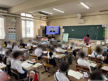 2年生は国語で「はたらく人に話を聞こう」の学習をしています。以前した質問に校長先生が動画で答えてくれました。子ども達は動画を見ながら、大事なことを聞きもらさないように熱心にお話を聞いていました。