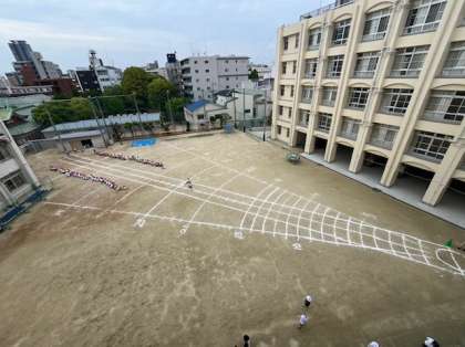 4年生は体育で新体力テストを実施しました。今日の種目は50m走の測定です。この種目は子どもにとっても関心の高い種目で、一生懸命走っている姿が印象的でした。