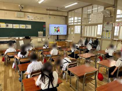 最後に、いじめ・いのちについて学級で話し合ってください。お互いの命を大切にし、いじめのない学校にしていきましょう。とお話がありました。各教室では、子ども達は真剣に校長先生のお話を聞きました。自分を大切に、周りの人を大切に、みんなが安心して学べる玉造小学校にしていきましょう。