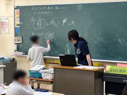 3年生は理科の学習です。チョウの成虫の体のつくりについて調べていきます。調べる前に、教室の黒板に体のつくりについての予想を書いてくれました。