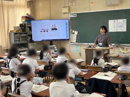 4年生は国語で「わたしのクラスの生き物図かん」の学習をしています。この学習では動物について調べたわかったことリーフレットにまとめます。リーフレットの例を見ながらイメージを膨らませました。