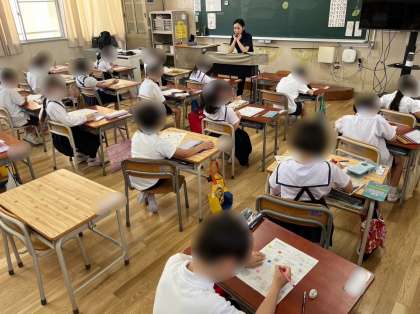 1年生は生活の学習です。2時間目に行ってきた「まちたんけん」で見つけたものをふり返っていきました。信号機や横断歩道、公園等いろいろなものを見つけることができました。
