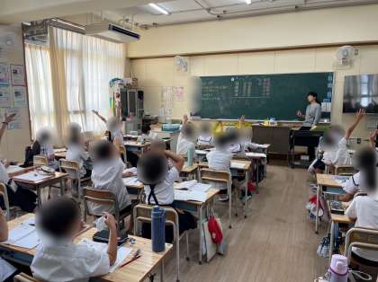 3年生は算数の学習です。3けたどうしのひき算をするとき、十の位が0時はどうすればよいか考えました。先生が方法を問いかけると、たくさんの手が挙がりました。