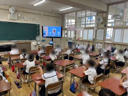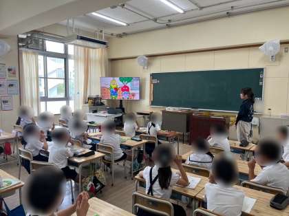 本校では、火曜日と木曜日の掃除の後は、10分間の英語タイムを行っています。各学年に応じた英語のデジタル教材を活用して、英単語や歌に親しみながら英語を学習しています。子ども達もすっかり英語タイムに馴染んでいて、とても自然の英語の学習が行われています。