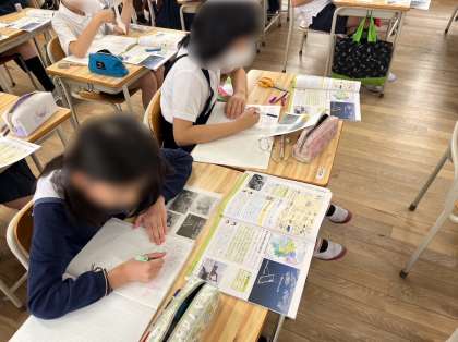 4年生は社会で資源ごみの行方について学習しました。調べると資源ごみは手作業でリサイクルできるものと、ごみとに分けてごみを減らしていることがわかりました。