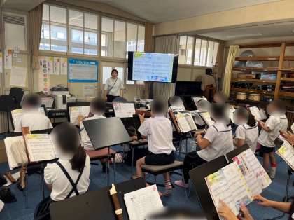 4年生は音楽できき合いながら楽しく歌う学習のめあてを立て「プパポ」の曲を歌唱しました。2つのパートで代わり替わり歌ったり、重ねて歌ったりしました。