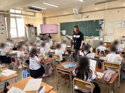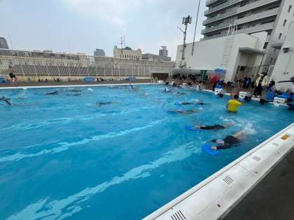 4年生はプール水泳の学習です。今回も外部講師に来ていただきクロールの泳ぎ方を教えていただきました。プールを縦につかって25mをクロールで泳ぐグループとビート板を使って息つぎをマスターするグループに分かれて練習しました。