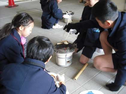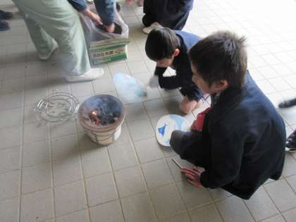 2月15日(月)3年は「昔体験」として七輪の使い方を体験しました。今の便利な道具に慣れている子どもたちにとって、火のおこし方など初めてのことばかりで、とてもいい体験でした。