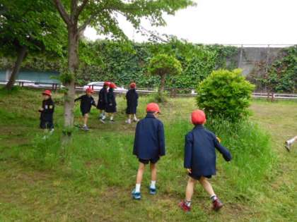 日頃は玉造公園で何気なく遊んでいる人たちも、芽吹いてきた草花など新しい発見をして目を輝かせていました。