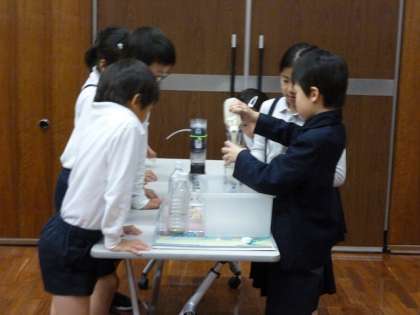 また、室内では、きれいな水にするための実験をするなど、浄水場のしくみを詳しく知ることができました。