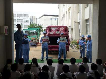 5月16日(月)4年は、大阪市環境事業局の方に来ていただき、環境学習をしました。