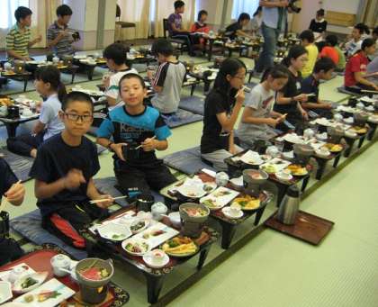 写真は、上から宿舎の鳥羽小涌園での夕食の様子です。