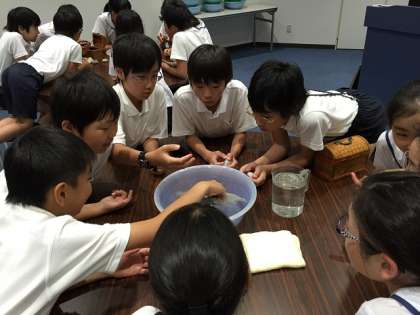 中は、鳥羽水族館で体験した「生き物発見教室」の様子です。