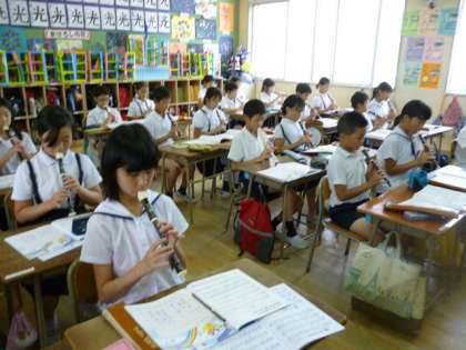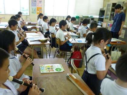 4年の音楽の学習では、リコーダーで「マイ・ボニー」の練習をしています。