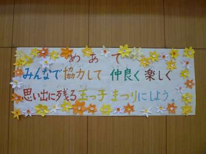 写真上は、児童会が作った玉っ子まつりのめあての掲示です。