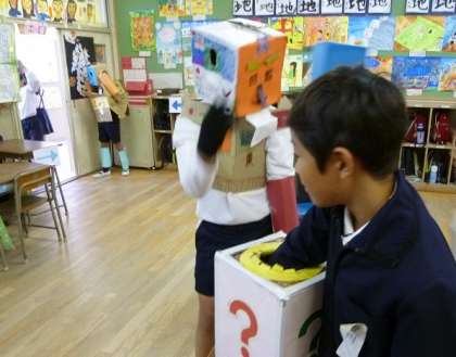 写真下は、玉っ子まつりの「なぞなぞロボット」のお店の様子です。