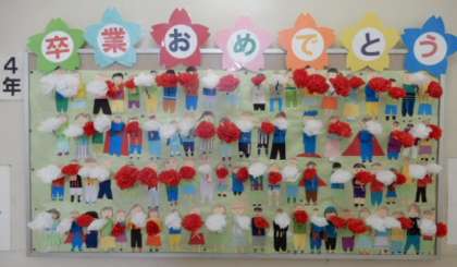 卒業を祝い、各学年から心のこもったメッセージが学校中を彩っていいます。