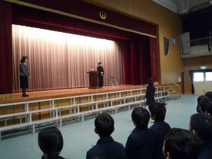 学校長から退職する教職員の紹介の後、児童代表が教職員との思い出を交えながらお別れのあいさつをしました。