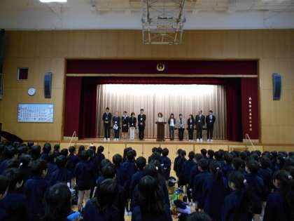 始業式の最後に今年度の教職員体制の発表があり、教職員も児童も新年度のスタートを切りました。