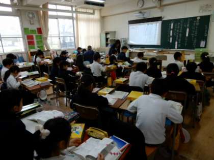 写真上は、2年の国語「風のゆうびんやさん」、中は3年の国語「国語辞典の使い方を知ろう」、下は4年「こわれた千の楽器」の学習の様子です。
