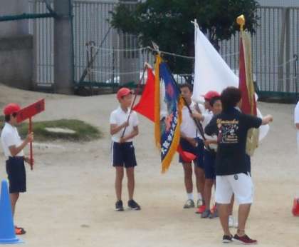 校旗や優勝旗、各学年の列の前で誘導するプラカードを持って入場する練習も行いました。