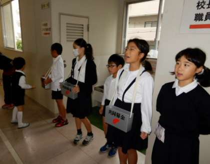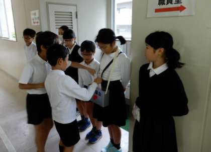 募金一日目の今日は、その意義を月曜日の朝会で知り、たくさんの児童が募金に協力してくれました。