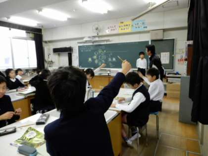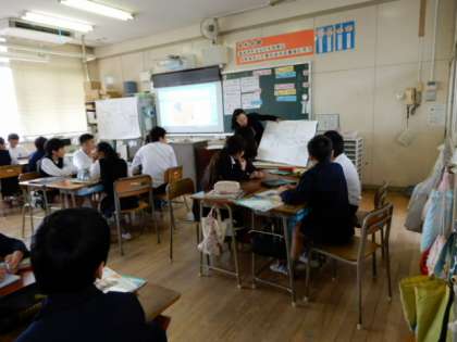 6年1組は、理科「月と太陽」で月の満ち欠けについて学習しました。6年2組は、社会「戦争と人々のくらし」で、当時のくらしの様子をクイズ形式にしてグループで学習しました。