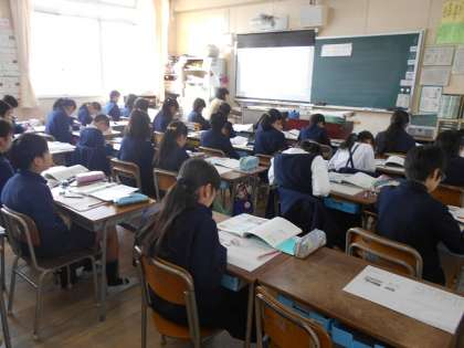 写真上は、社会「大和川のつけかえ」の学習の4-1の様子です。