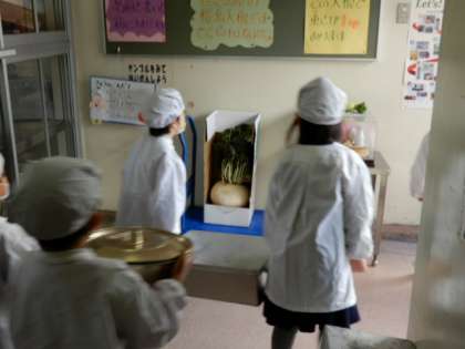桜島大根の重さ当てクイズ(給食週間の取り組み)