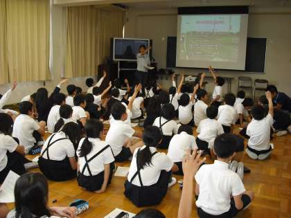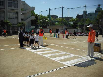 5月17日(土)土曜授業で交通安全指導を行いました。東警察署交通課のご指導のもと、玉造地域セフティネットの皆さんのご協力を得て、1,2,3年生は歩行について、4年生は自転車についての学習をしました。5,6年生は各学年でDVDを使い、自転車の安全な走行について学習しました。交通安全指導終了後、今年度最初の災害時児童引渡し訓練も行いました。