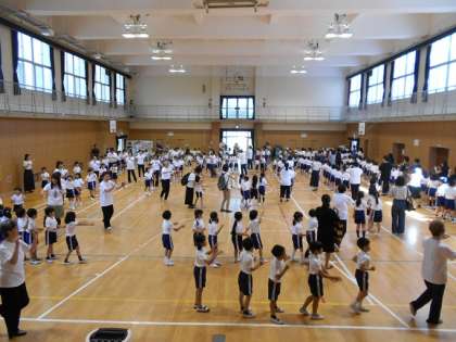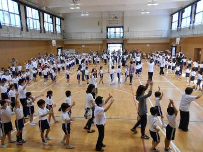 6月4日(月)に、玉造女性会の方々にお越しいただき、2時間目には1・2年生が、3時間目には3・4年生が民謡踊りを教えていただきました。