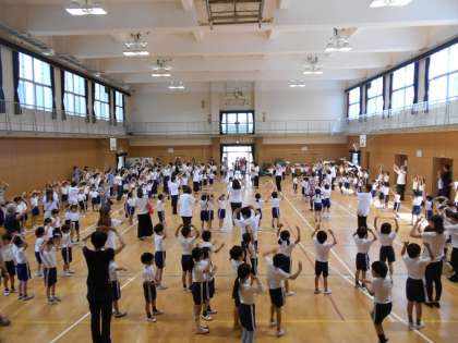 写真は、2時間目の1・2年の様子です。「炭坑節」と「ドンパン節」を踊りました。
