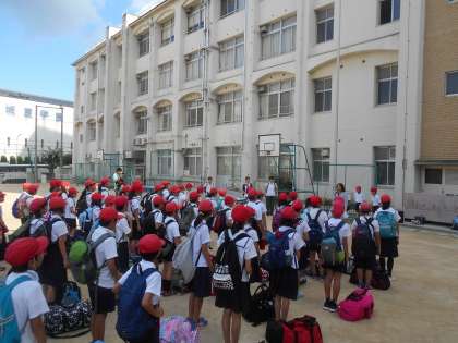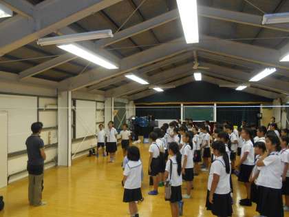 写真下は、ハチ高原に到着後、開舎式をしているところです。