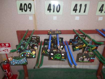 (写真中)自分で磨いた焼き板に絵付けをしました。