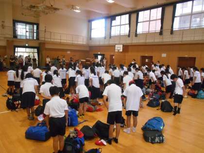 (写真下)無事に学校に帰ってきて、帰校式を行いました。